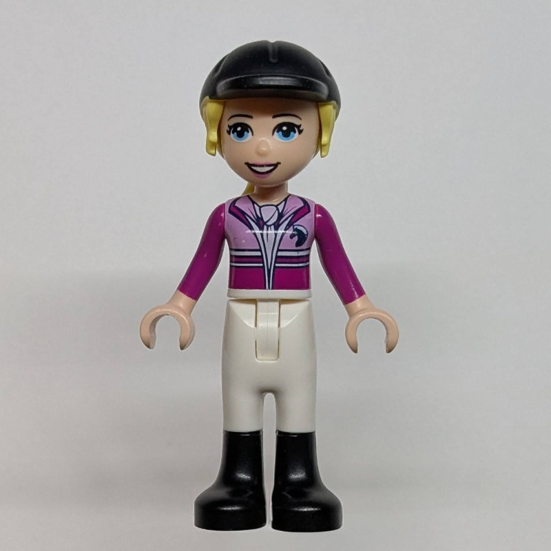 Woman, Red and White Letterman Jacket, Dark Bluish Gray Legs, Black Helmet with Visor
